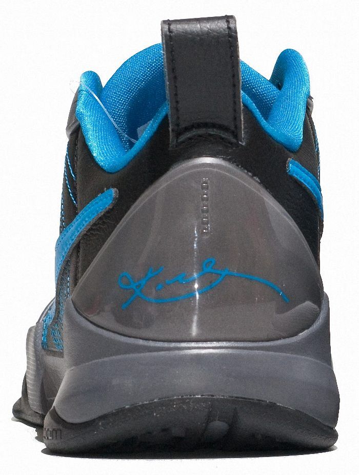 Here you have a picture of Kobe's fifth basketball signature sneaker made by Nike for the 2009-2010 NBA season, the Zoom Kobe V, here in colors sky blue, black and grey.